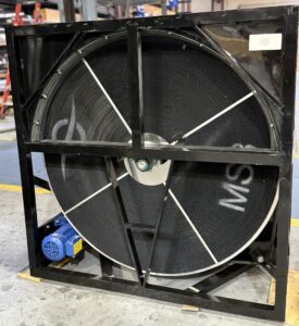 We offer belt and direct drive options. Our direct drive option is available with the gear reducer connected to the rotor’s hub extended shaft via a keyway. Our belt design features a simple gravity tensioned double ”V” belt design.